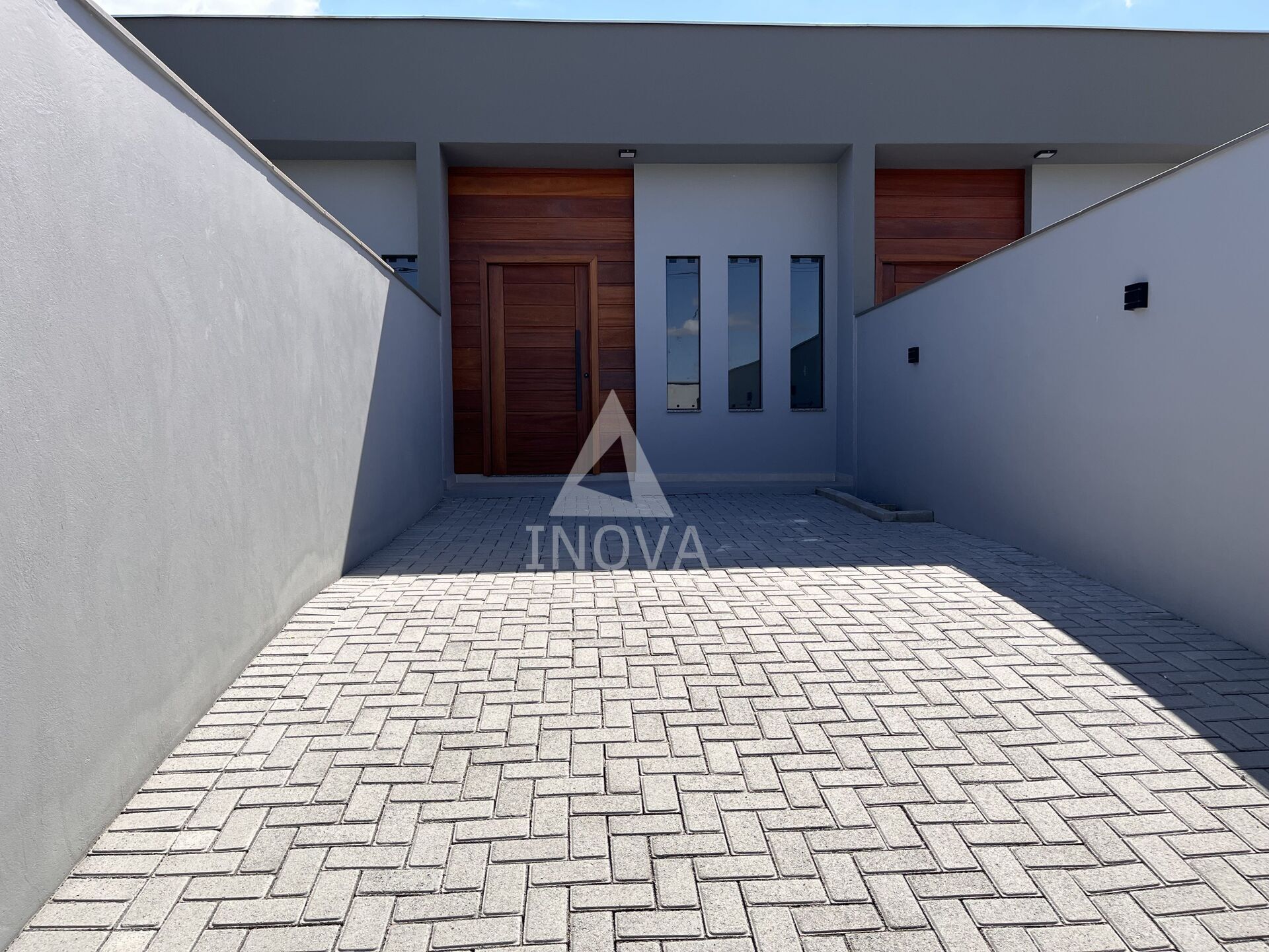 Imóvel possui área gourmet com churrasqueira, gesso, massa corrida, porcelanato, vidros temperados, porta frontal em madeira e ripados, preparação para ar-condicionado, vaga para dois carros com paver e canteiro para plantas, jardim interno para iluminação e ventilação, portão frontal basculante com porta para pedreste, pintura premium.