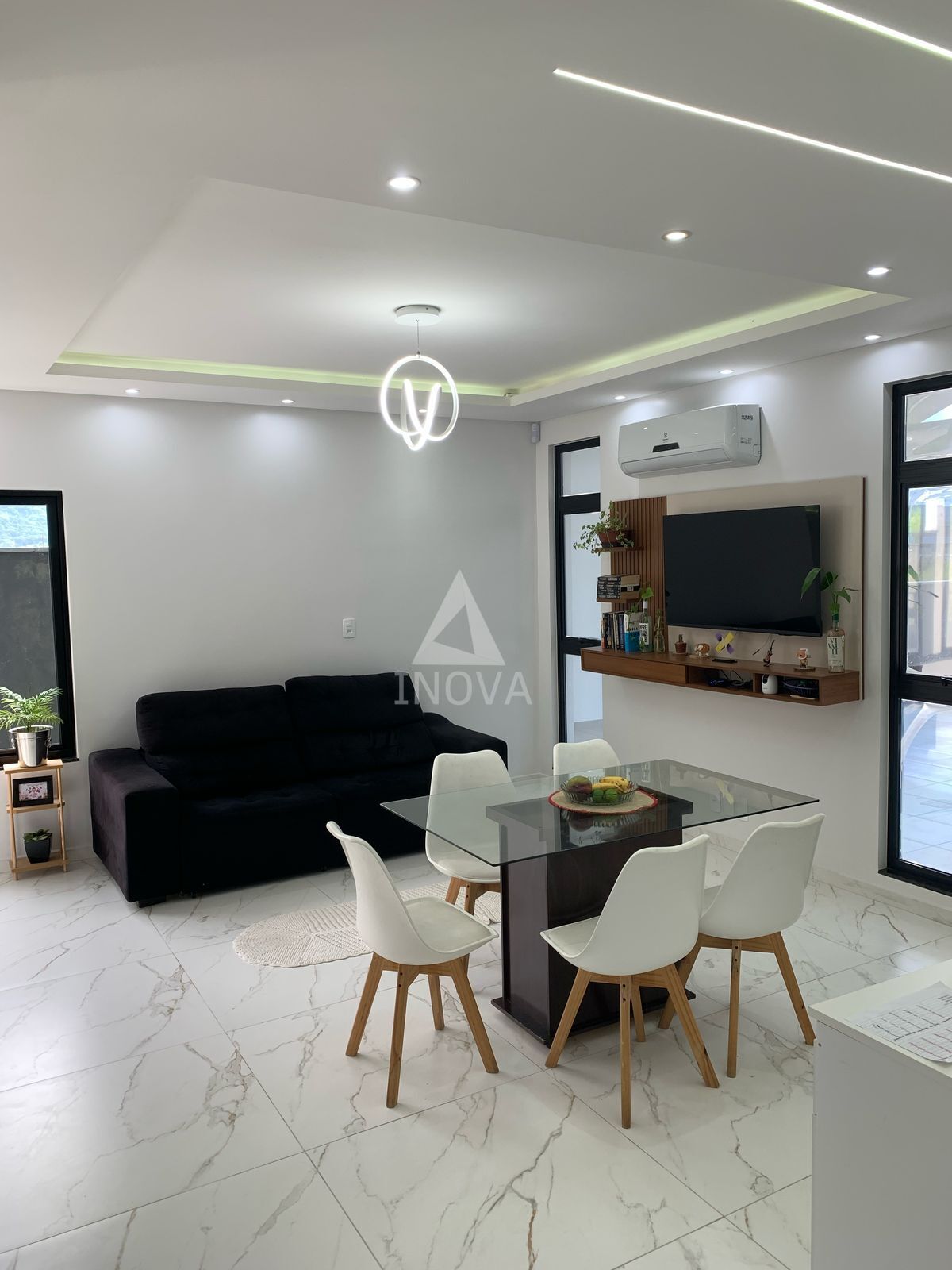 - Acabamentos: rebaixo em gesso com LED, massa corrida, piso laminado e porcelanato