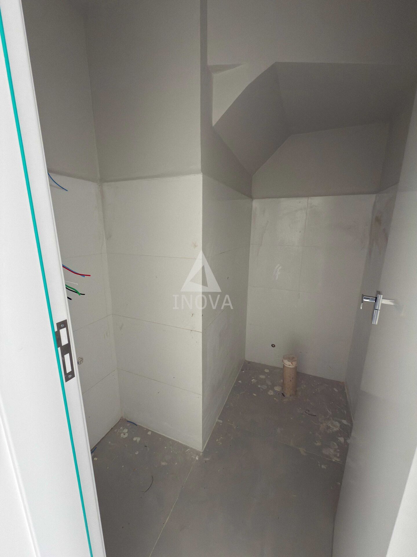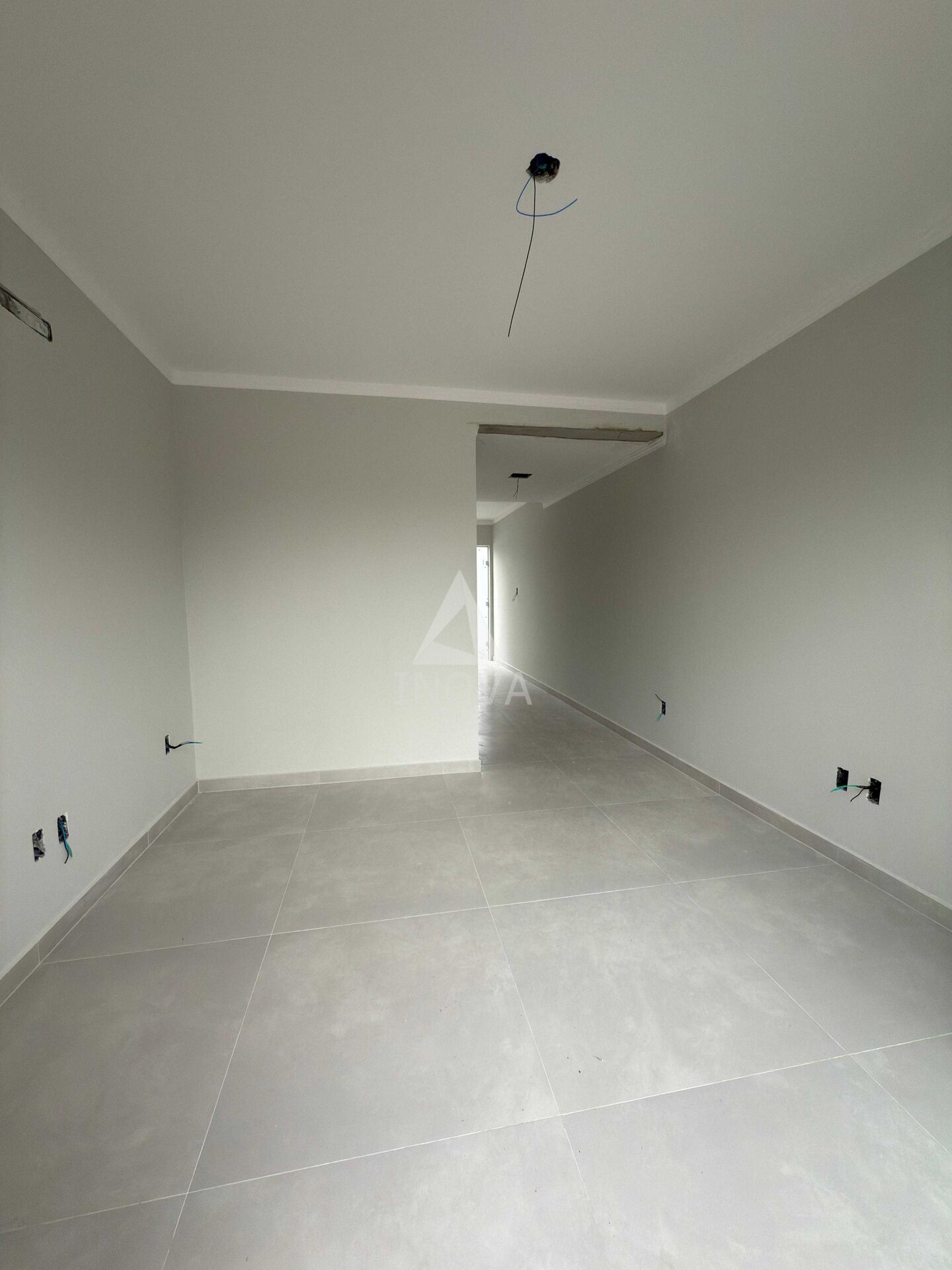 Acabamento com massa corrida, piso com porcelanato.